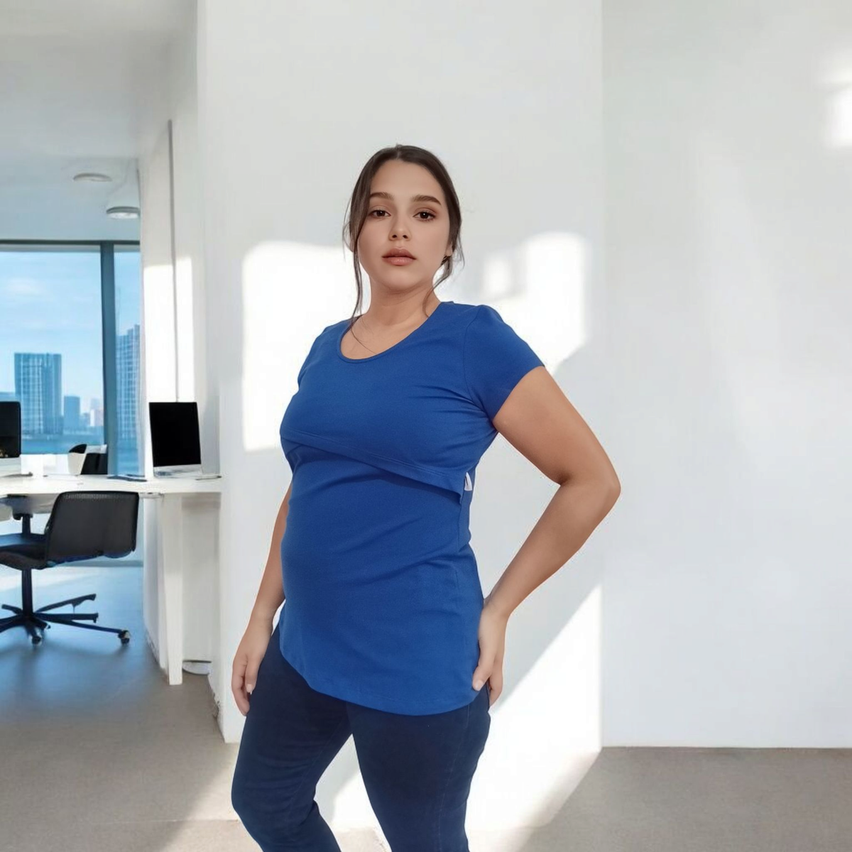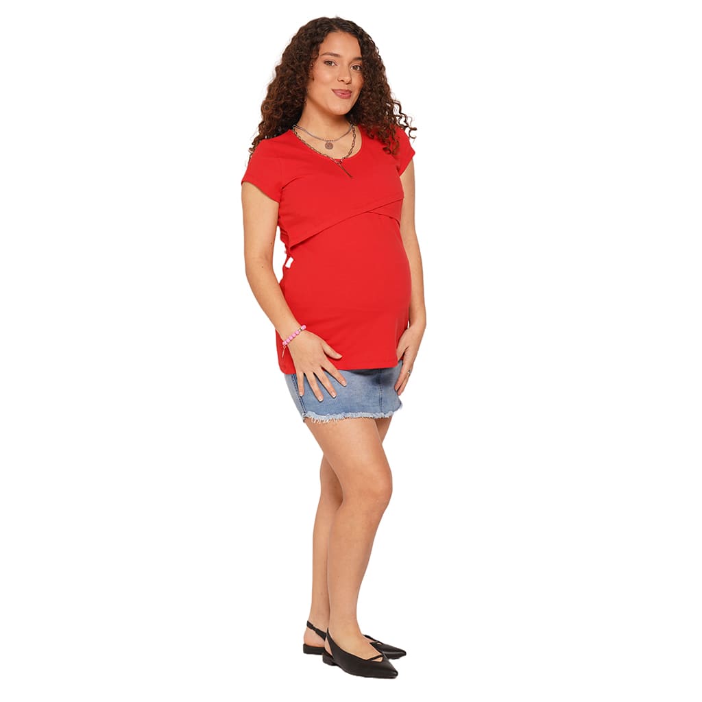 Esta remera es ideal para uso diario te permite amamantar comodamente Detalle de recorte delantero que se levanta para una practica lactancia. Esta confeccionada en suave algodón elástizado. Calce Slim Fit se adapta al cuerpo, delineando la silueta. Largo Regular