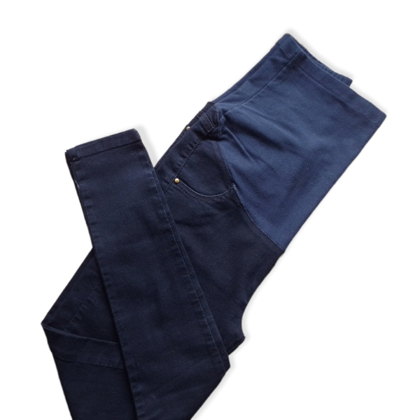 Pantalón de jean elastizado diseñado especialmente para embarazadas. Su cintura con faja alta maternal de algodón se adapta suavemente a la panza del embarazo brindandote soporte y confort durante todo el dia.