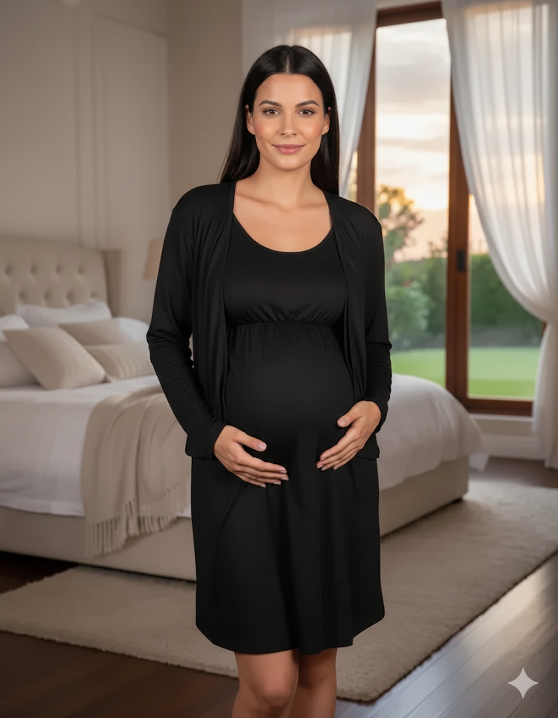Conjunto de Camisón maternal musculosa con breteles regulables y sistema de lactancia