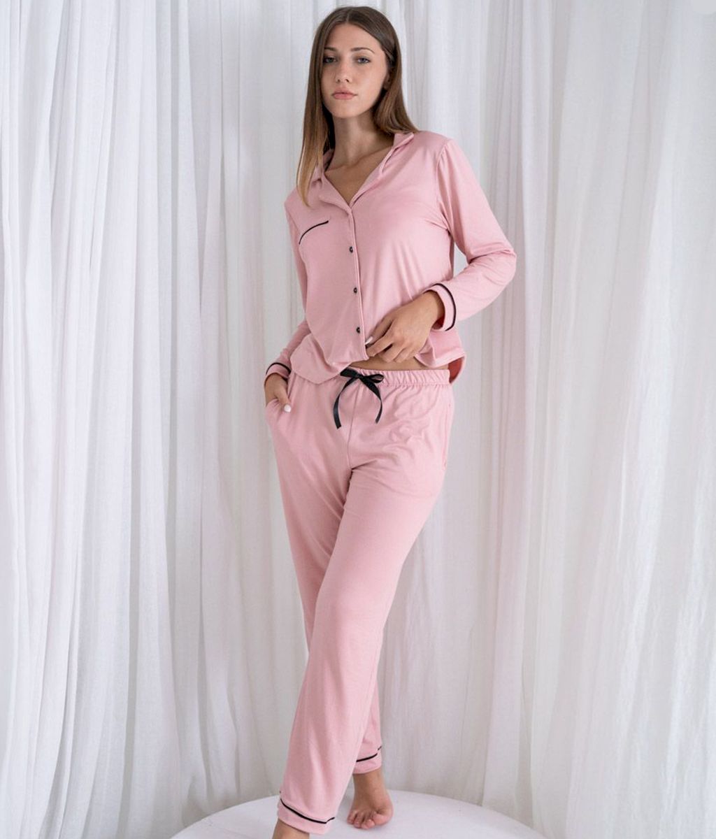 Este pijama es ideal para las noches de invierno, confeccionado en modal gamuzado con blusa mangas largas y pantalon recto te mantendra abrigada y comoda.