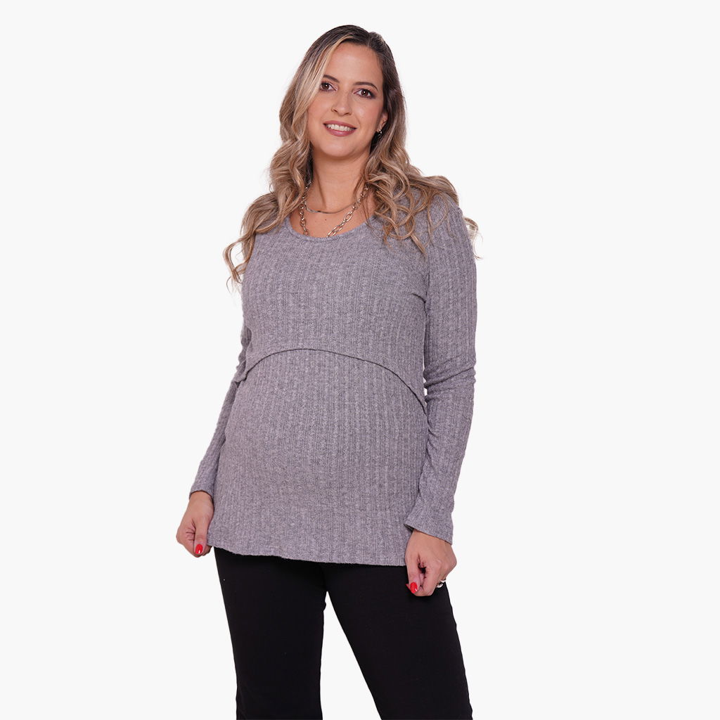 Remera de Suave Lanilla Labrada tejido simil trenzado. Perfecta para el invierno, su textura te brindara calidez y comodidad. Su diseño con recorte delantero facilita la lactancia materna, permitiendo su uso durante el embarazo y postparto.