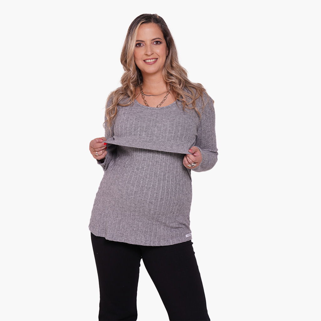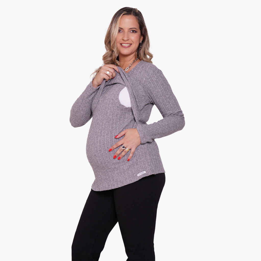 Podes usarla sola o combinarla con una camiseta o musculosa interior de lactancia y darle uso como un sweatter .