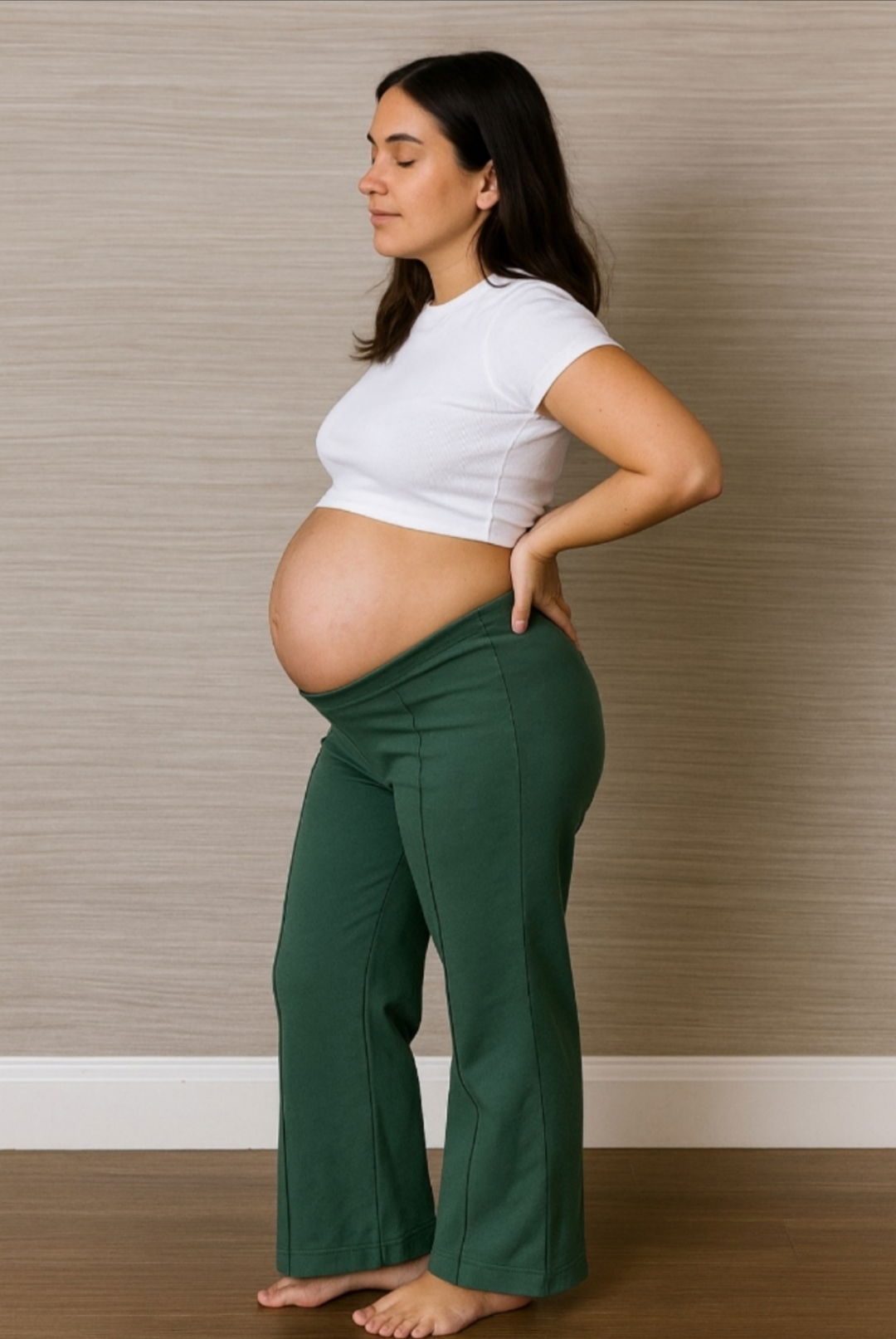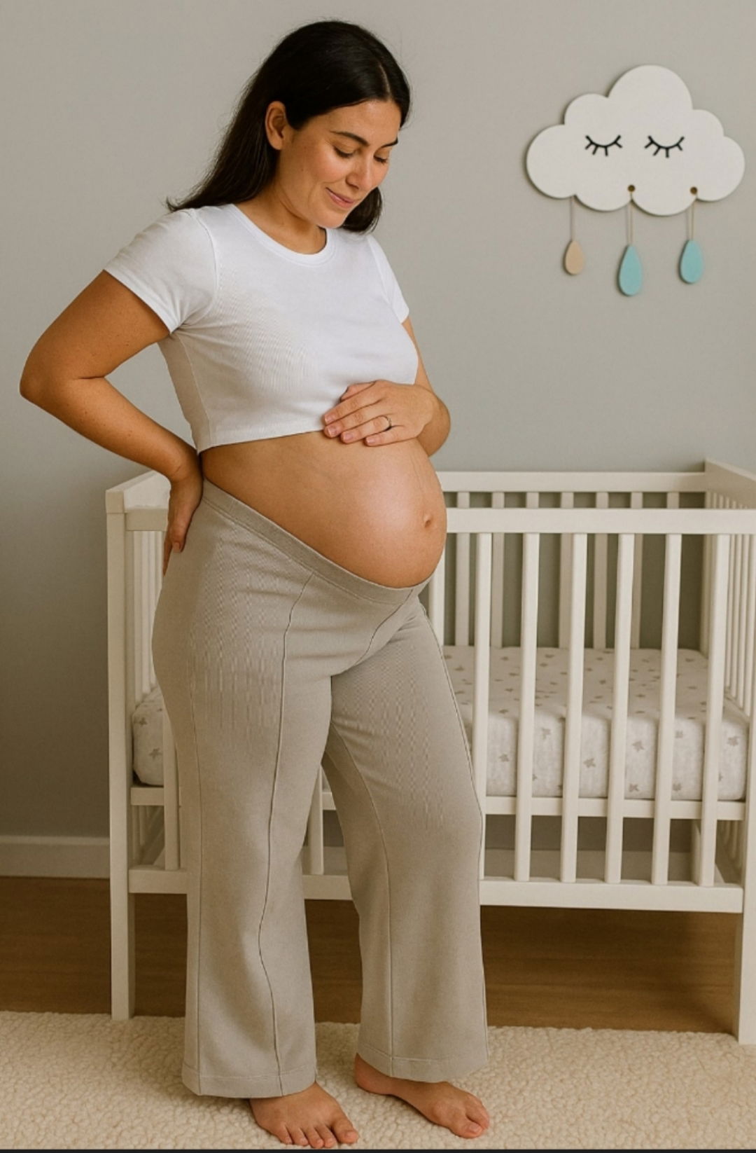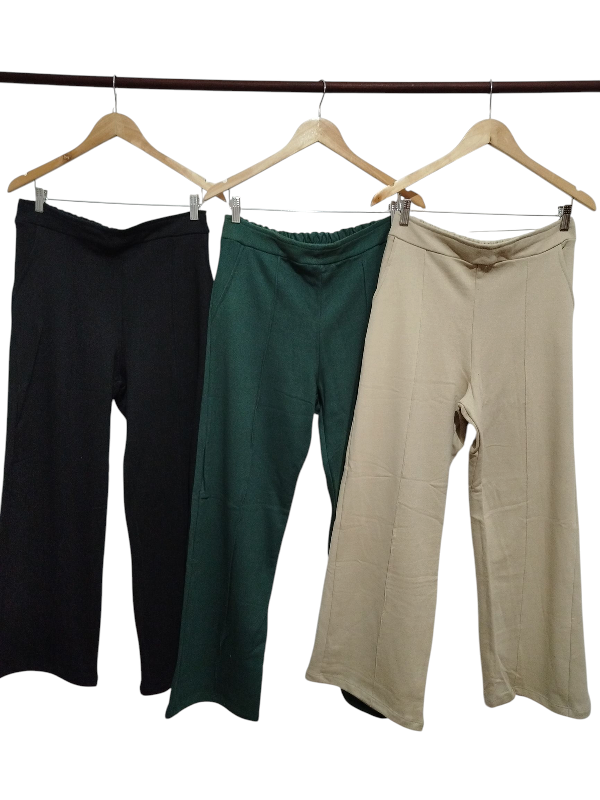 Modelo corte recto ancho, doble cintura delantera, trasero con elastico