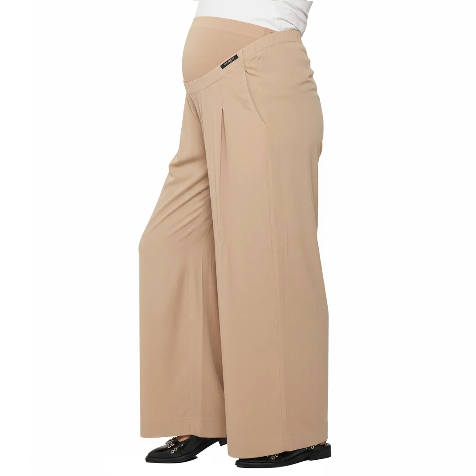 Pantalón de Lino Pierna ancha Wide leg con pinzas para usar durante el embarazo y los primeros meses de Postparto. Este pantalón de Lino está diseñado para estar cómoda todos los días, con faja maternal de algodón