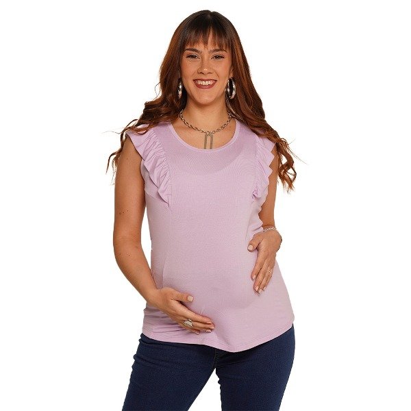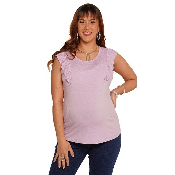 Esta remera de suave modal es ideal para uso diario, con comodo sistema de lactancia debajo los volados,