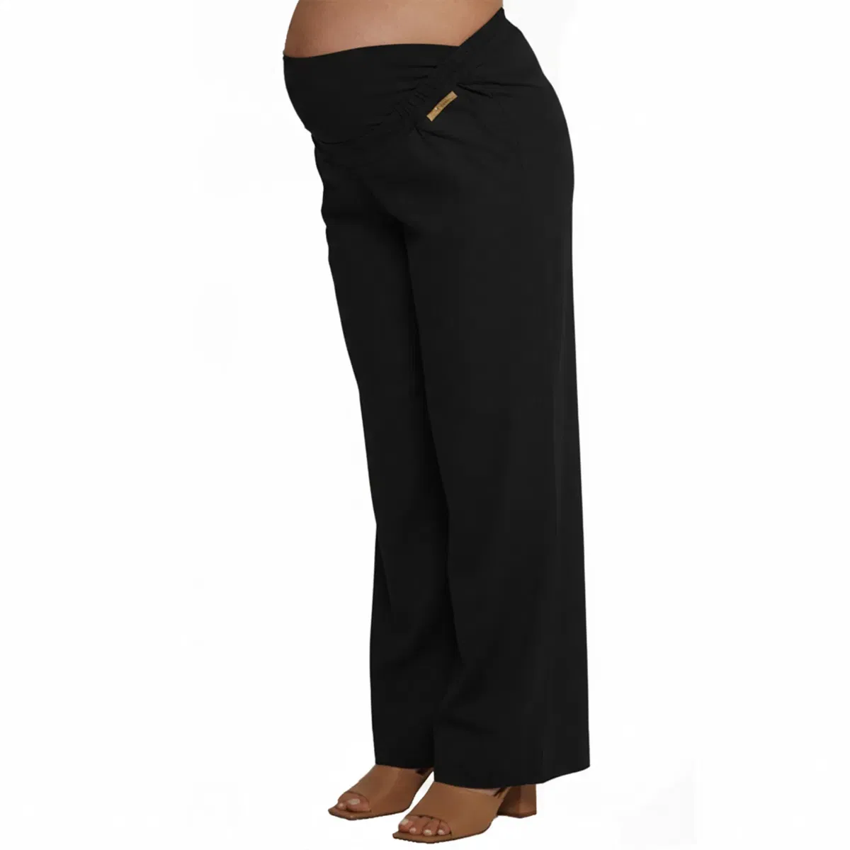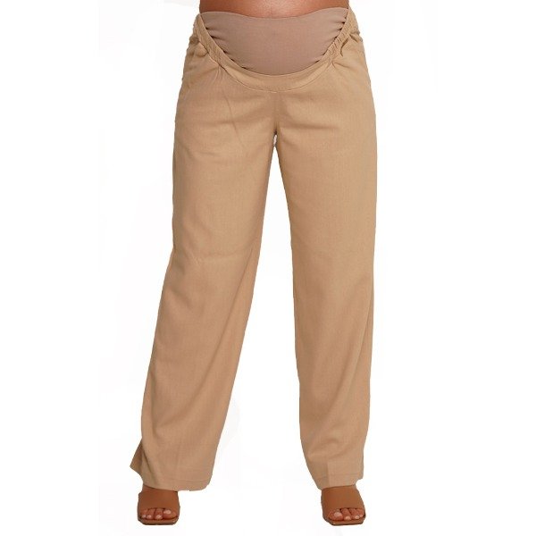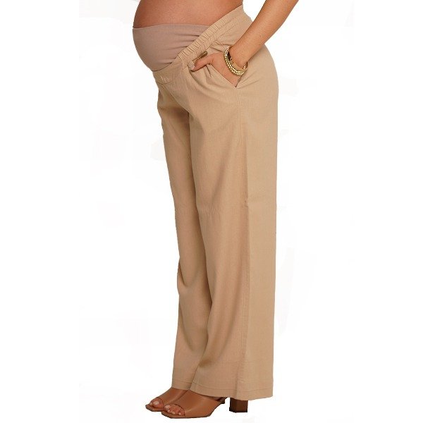 Pantalón de Lino corte de vestir recto para usar durante el embarazo y los primeros meses de Postparto. Este pantalón de Lino está diseñado para estar cómoda todos los días, con faja maternal de algodón y detalle de ruedo.