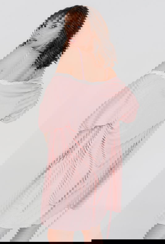 Bata : Elegancia y confort se combinan en esta bata con mangas 3/4 y delicados detalles de puntilla. Su suave tejido de gran caida es ideal para los momentos de descanso y lactancia.